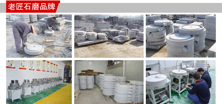 旗下品牌:老匠石磨品牌,代表的是公司自主研发生产的电动石磨机,“老匠石磨”其含义是指公司追求“工匠精神”对自己的产品精雕细琢,精益求精,追求卓越的创造精神、不断改善自己的工艺。老匠石磨的特点:采用纯天然大别山脉麻青石,石材环保,耐磨损,有韧性;动能采用出口电机,核心部件选用进口钢材和德国轴承及密封圈;智能电压显示;整机设计人生化,智能安全,荣获国家多项技术专利,是长期出口东南亚国家的电动石磨机。